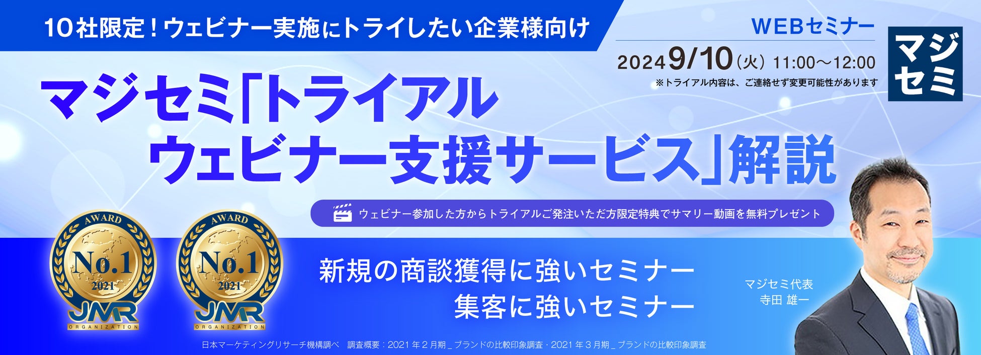 本ウェビナーではマジセミのサービスより詳細に解説した内容となっております。本ウェビナー参加者限定のご発注特典もついておりますので、是非ご参加くださいませ。
