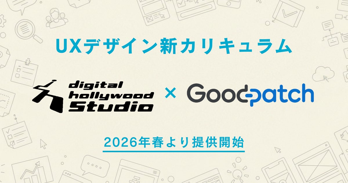 IT関連及びデジタルコンテンツの人材育成スクール、デジタルハリウッド(運営会社:デジタルハリウッド株式会社、本社/本校:東京都千代田区、代表取締役社長兼CEO:藤井雅徳、学長:杉山知之)が運営をする、新しい学びのスタイルを通して多様なライフスタイルを支援し全国へ展開している、Webと動画について学べるラーニングスタジオ『デジタルハリウッドSTUDIO』では、Webデザインおよびクリエイティブ教育の質をさらに高めるべく、UX分野における豊富な知見を持つ株式会社グッドパッチと共同で、Webデザイナー専攻向けの『UXデザイン』の新カリキュラムを開発し、2026年春より提供を開始いたします。