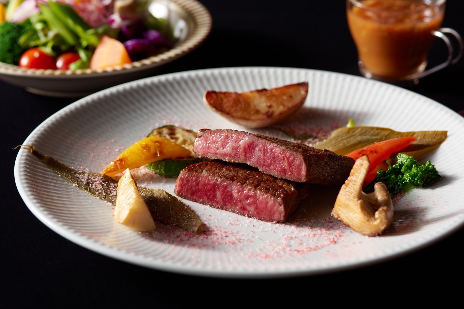 "幻の和牛"「尾崎牛」のステーキを最旬野菜と桜塩で。お祝いシーズン限定『春を彩る桜コース』