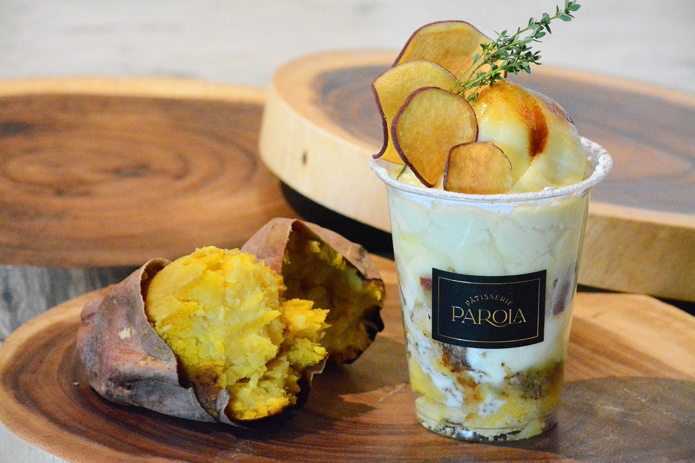 フランス人パティシエのアレクシ・パロラシェフが手がけ、東京を中心に展開する<Pâtisserie PAROLA>。和とフレンチが融合する洗練されたスイーツが自慢のパティスリーから、伊勢丹新宿店でしか食べられないパフェが登場。使用しているのは、甘みが強く香り高い、国産のシルクスイートや紅はるか。トッピングのチップスやカップ内のグラッセにたっぷりと用いたさつまいもが、特製のアイスクリームや国産生クリームと絡み合い、濃厚な余韻をもたらします。イートインで、溶けないうちにお召し上がりください。