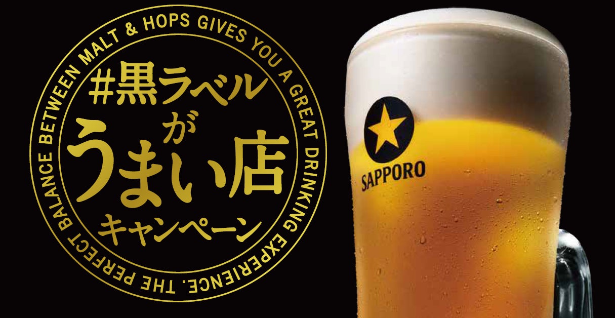 キャンペーンハッシュタグ(3つ):「#黒ラベルがうまい店」「#店名」「#PR」