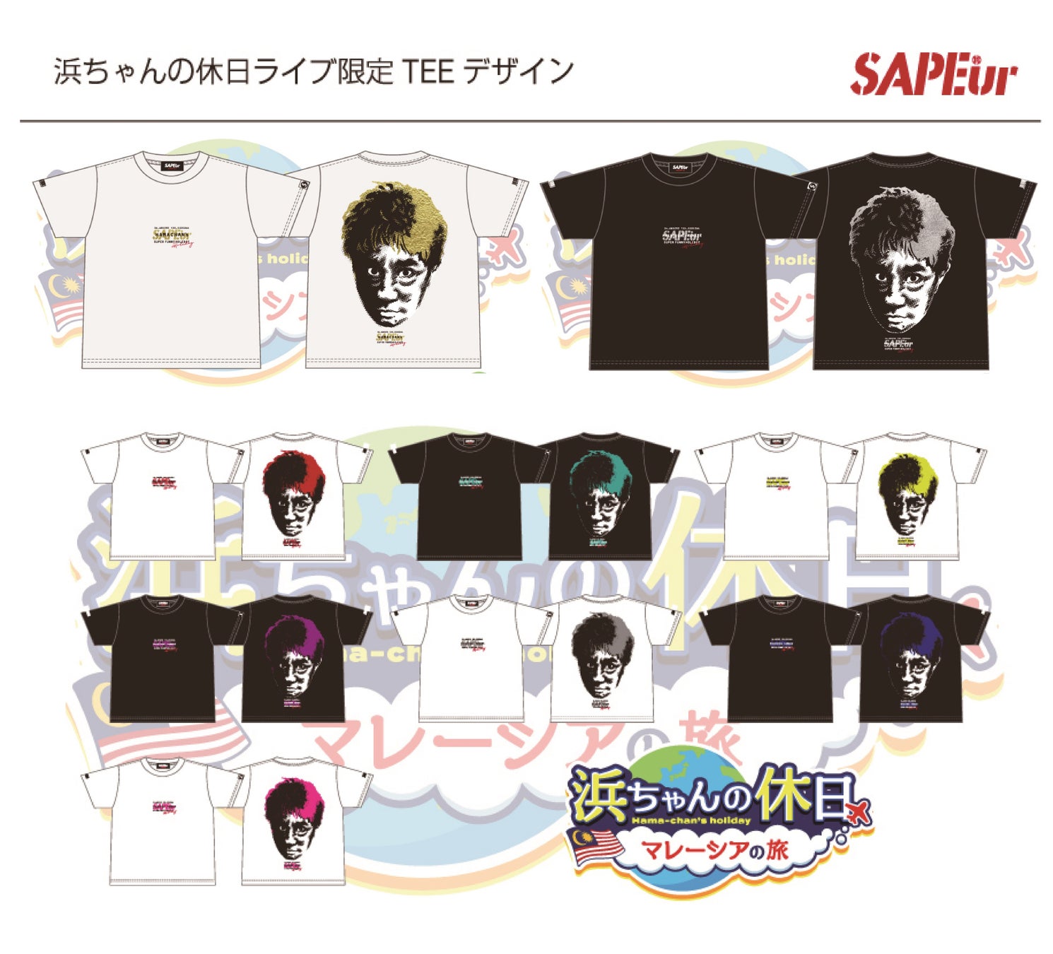 11月3日(金)11時より受付を開始する先行チケットは、着ればあなたも「浜田軍団」の一員となれる、大人気ブランドSAPEur×浜田雅功の本公演限定コラボTシャツ付き!