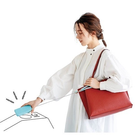 リール付きの多機能ウォレットの裏側にはカードポケットが付いているので、ICカードを入れればパスケースとしても使用可能です。