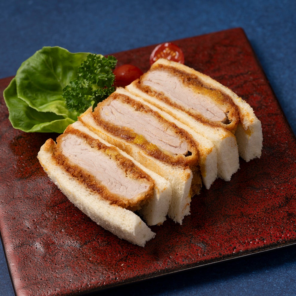 片面を軽く焼きあげたトーストと衣のサクッという食感、そして肉厚な四元豚ヒレカツ!フルーティーなソースとスイートマスタードソースのWソースもお肉の美味しさを引き立てます。