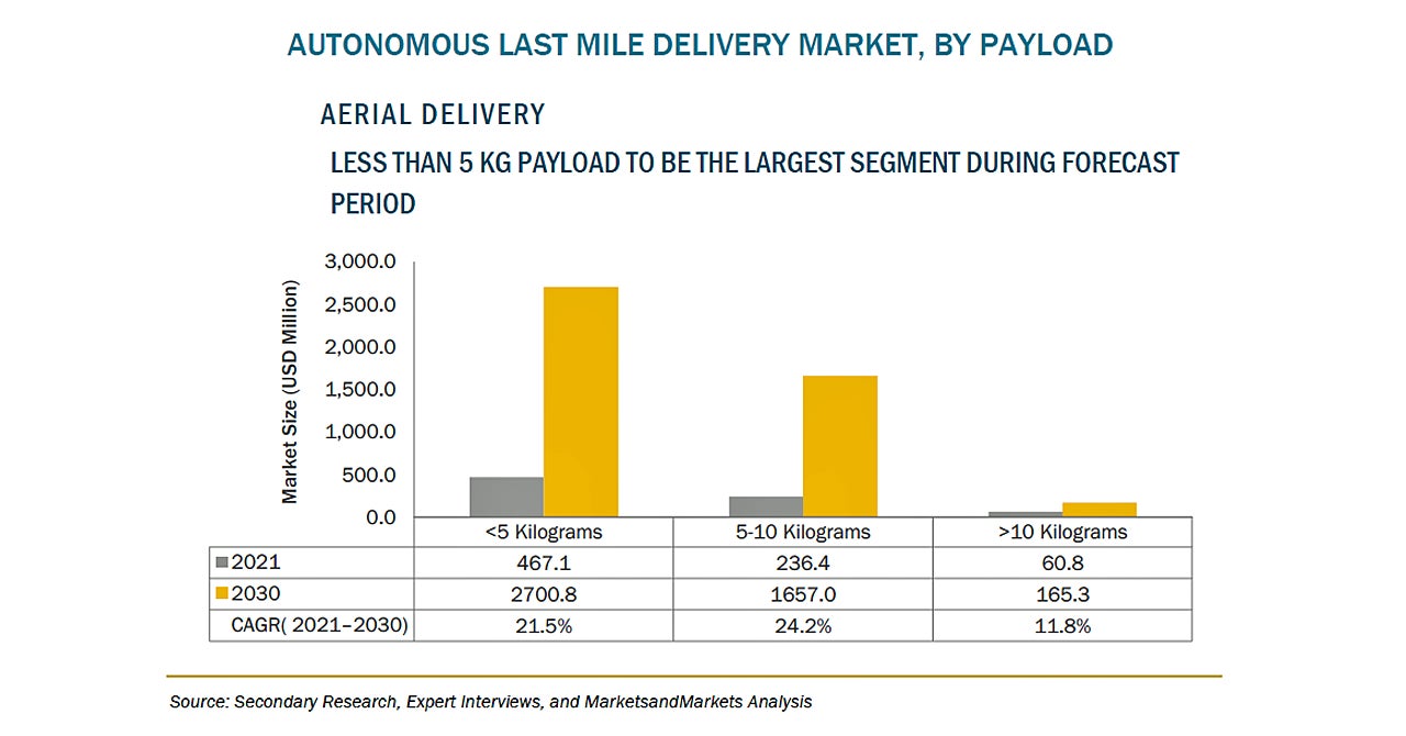株式会社グローバルインフォメーションは、市場調査レポート「自動ラストマイル配送の世界市場 (~2030年):プラットフォーム (空中配送ドローン・陸上配送車両 (配送ボット・自動運転バン&トラック))・ソリューション・用途・積載重量・距離・地域別」(MarketsandMarkets)の販売を1月31日より開始いたしました。
