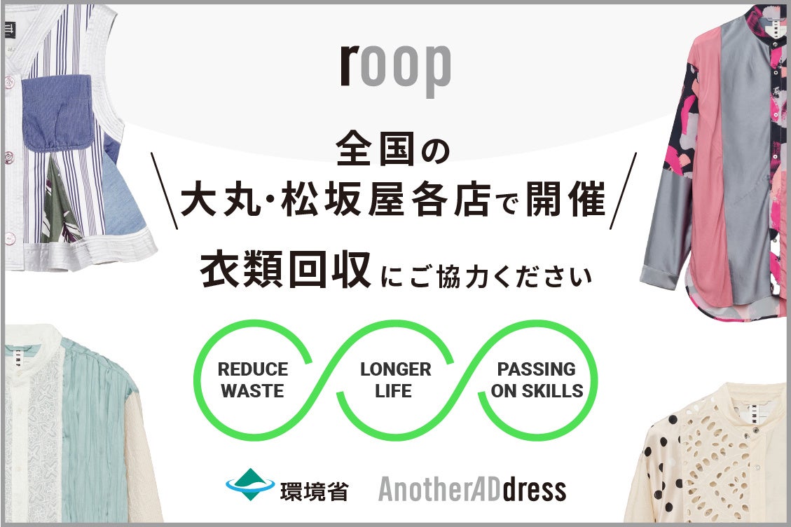 大丸松坂屋百貨店が運営するファッションサブスクリプションサービス “AnotherADdress(アナザーアドレ ス)” は、8月より始動した「衣類循環アップサイクルプロジェクト“roop”」において、着られなくなってしまった、思い入れのある衣類の回収を大丸・松坂屋7店舗、2日程(9月6日(金)~8日(日)、9月13日(金)~15日(日)の3日間※)にて実施いたします。※神戸店のみ、16日(月・祝)も開催