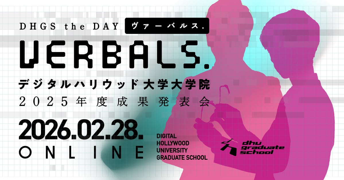 日本初の株式会社による専門職大学院で、SEAD(Science/Engineering/Art/Design)4要素の融合をコンセプトとして、デジタルコミュニケーションを駆使し、社会に新しい産業や文化を生み出すリーダーを輩出するデジタルハリウッド大学大学院(所在地:東京・御茶ノ水、学長:杉山知之、以下本大学院)は、大学院生の研究成果を発表する『デジタルハリウッド大学大学院2025年度成果発表会VERBALS. DHGS the DAY』を、2026年2月28日(土)にオンライン開催いたします。