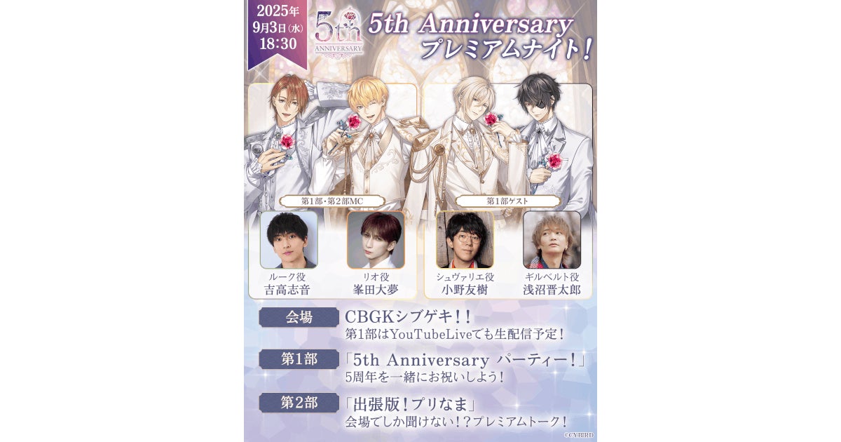 これを記念して2025年9月3日(水)に5周年を記念したリアルイベント「5th Anniversary プレミアムナイト」を開催することが決定しました。