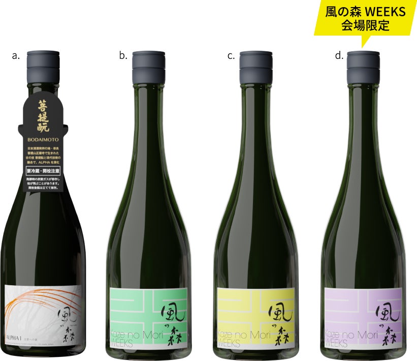 期間中は風の森定番酒をフルラインアップでご用意。本イベントに向けて醸造した特別な風の森も登場。