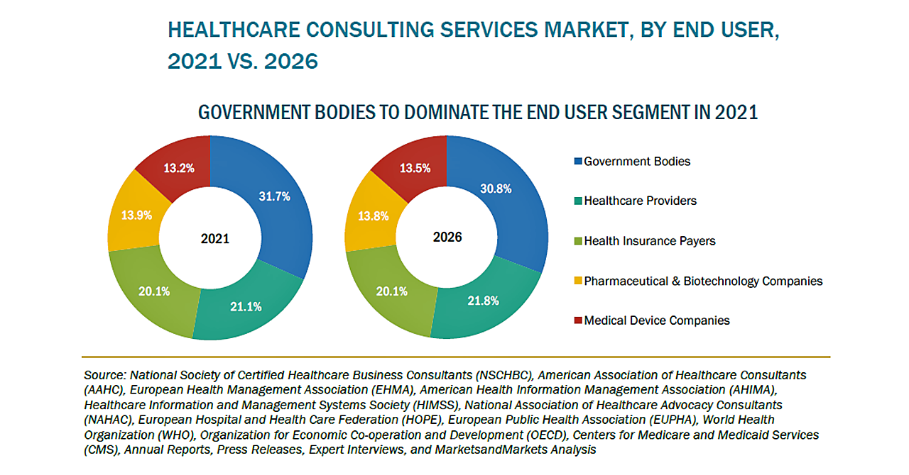 そのため、企業はヘルスケアコンサルタントを活用して、予算の最適化、より良い価値の提案、信用力の評価を行いました。経済が再開されると、多くの企業は、市場に再参入するための戦略と、財務シナリオを描く必要があり、来るべき金融危機に立ち向かうために、コンサルティング会社に構造改革を依頼する可能性があります。このようなケースで、コンサルティング会社は専門知識とガイダンスの提供を実現します。エンド・ツー・エンドのワークフローをサポートするヘルスケアコンサルティングサービスが提供するメリットに加え、HCITの導入支援や医療インフラの改善に向けた政府の取り組みを考慮すると、このサービスに対する需要は、安定したペースで増加すると思われます。変化を受け入れ、進化の機会と考える組織は恩恵を受ける可能性があります。一方、COVID以前の世界が戻ってくるのを待つ組織は、今後数年間、ますます厳しい状況に置かれることが考えられます。