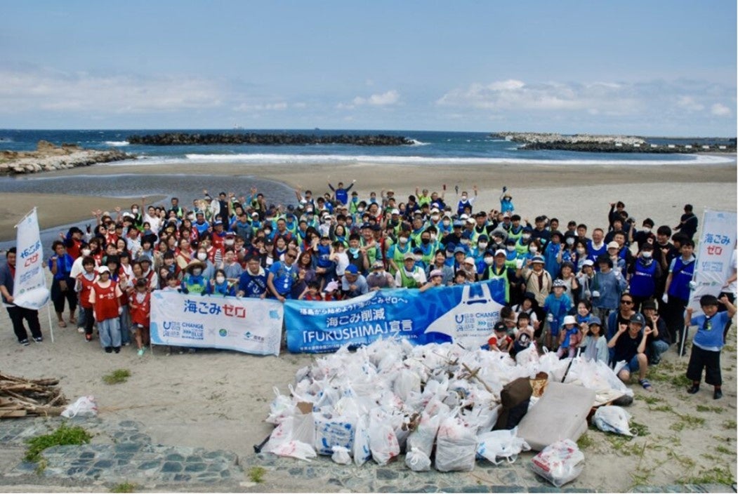 今回の清掃活動で最も参加人数が多かったいわきエリアでは、全国一斉清掃キャンペーンに合わせた全国生中継に初参加。参加者それぞれ海の色であるブルーのアイテムを身に着け、総勢239人の参加者による熱い想いを国内外の方々に向けて広く伝えることができました。