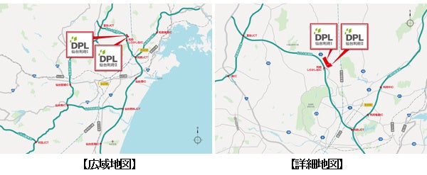 「DPL仙台利府Ⅰ」(※6)と「DPL仙台利府Ⅱ」(※6)は、隣接したマルチテナント型物流施設で、東北自動車道「富谷ジャンクション」と三陸自動車道「利府ジャンクション」を結ぶ仙台北部道路「利府しらかし台インターチェンジ」に近接しています。また、「仙台駅」から約17km、「仙台港」から約14km、「仙台空港」から約31kmと、仙台市街地への近距離配送に加え、国内外を結ぶ広域輸送にも対応可能な、物流拠点として優れた立地に位置しています。あわせて、周辺には住宅地が広がっており、通勤利便性に優れた職住近接の就労環境が整っています。