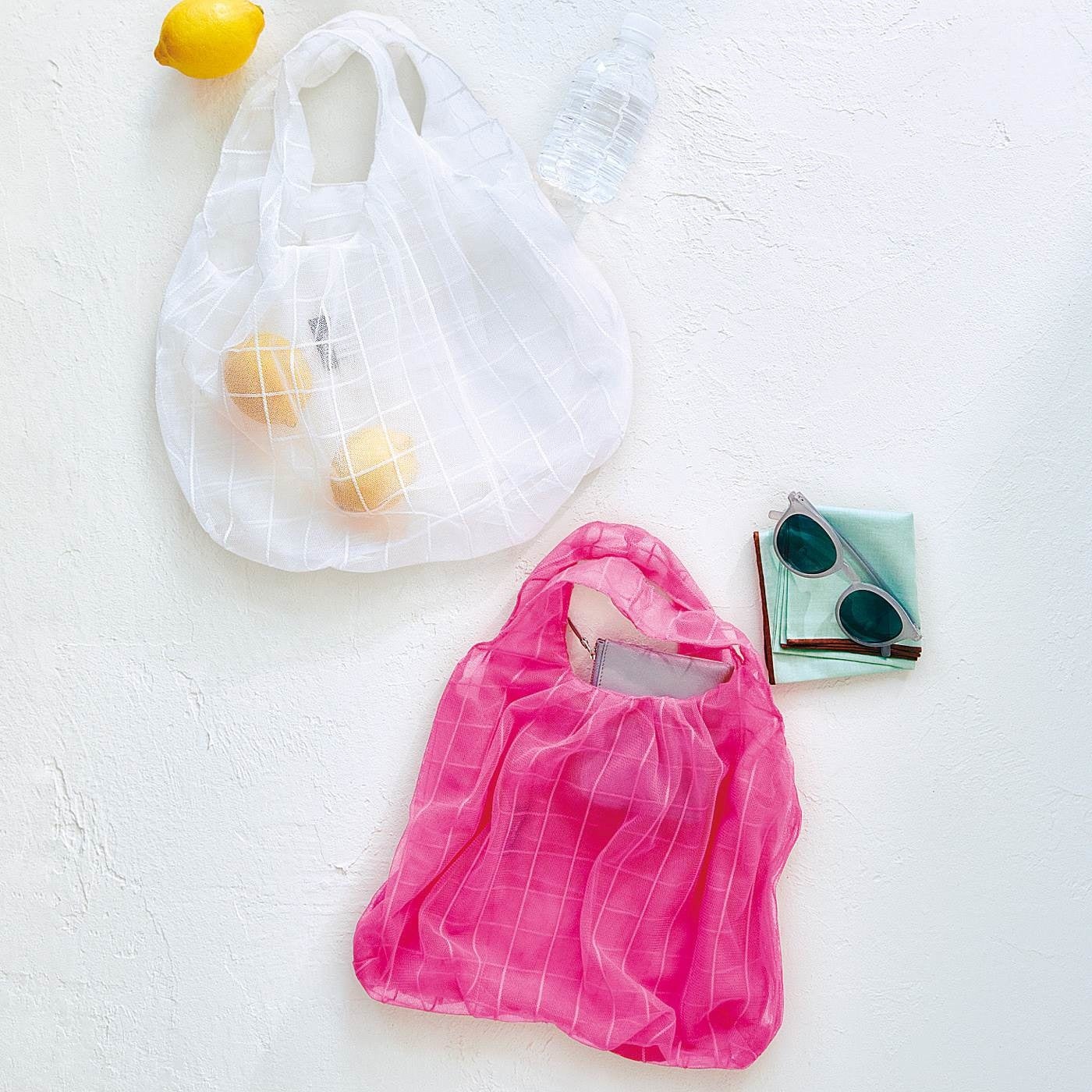 ストライプ柄のチュール生地で作られた、トレンド感あるシアーなバッグです。付属の内ポケットに丸めて入れ込むと、手のひらサイズにまとまるため、サブバッグとして使うことができ携帯にも便利です。チュール生地は、軽くてしわが気にならない素材で、きれいにたたまなくてもまとめることができます。