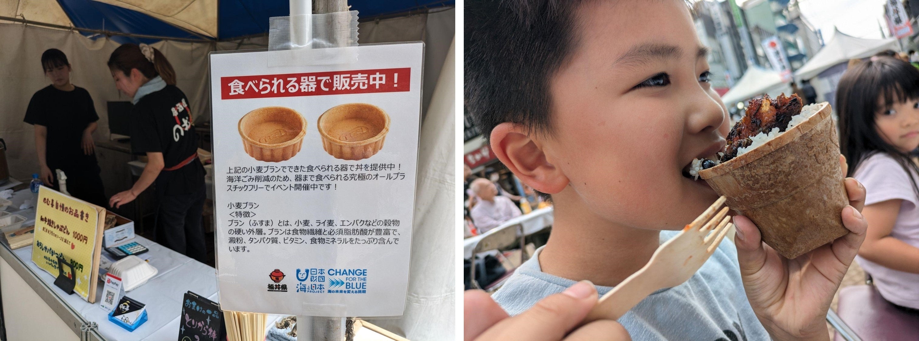 今回の「福丼ワール丼フェス」では海と日本プロジェクト『福丼県ブース』で「食べられる器の試食会」、「食べられる器を作る体験会」を実施。