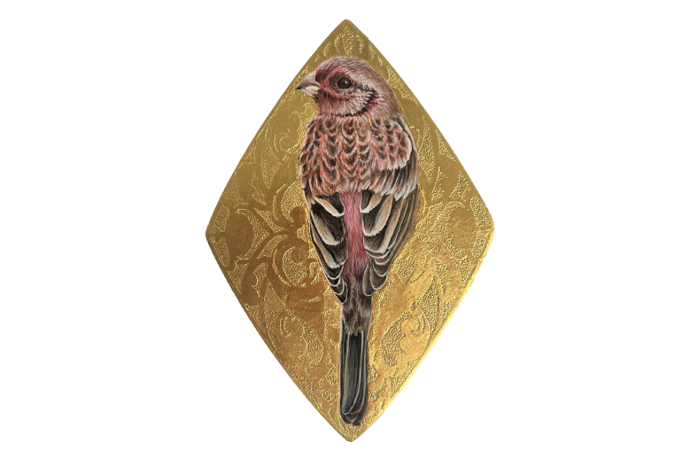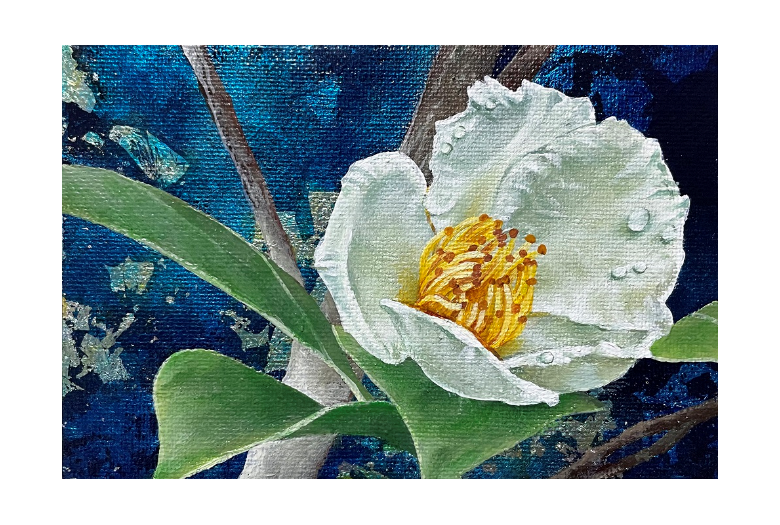 金箔や銀彩箔などを使用して、祭壇に描かれた神様を描くように動物たちに想いを込めて描く、黄金テンペラ画の井上雅未花。プラチナ箔やアルミ箔の上に透明色の油彩を重ね、雫の輝きをより鮮やかに演出する、油彩画の松尾彩加。テンペラ画と油彩画の古典技法を踏襲し現代にアレンジをしていく若き2人の挑戦は、今展で3回目の開催を迎えます。全日程作家両名とも在廊予定ですので、ぜひ作家との交流も楽しんでください。期間中、ライブペインティングも実施いたします。