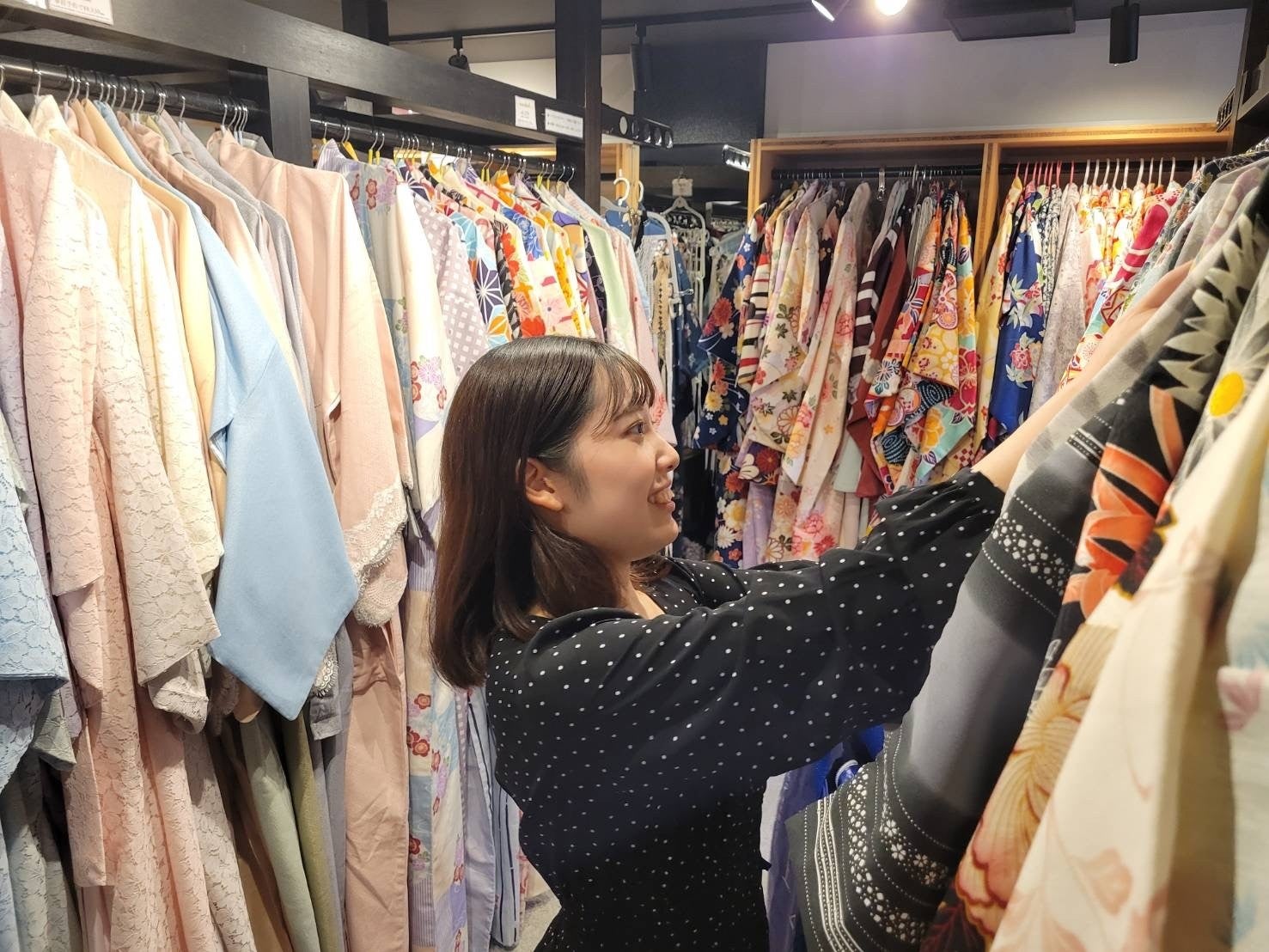 着物レンタルVASARA鎌倉小町通り店で好みの着物にお着替え。