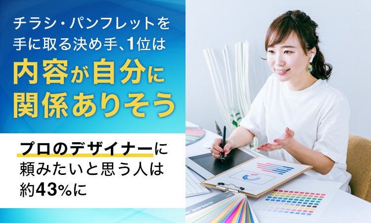 チラシ・パンフレットを手に取る決め手、1位は「内容が自分に関係ありそう」。プロのデザイナーに頼みたいと思う人は約43%に
