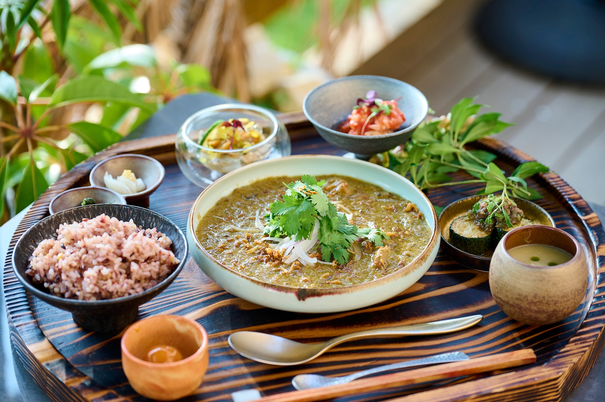 レストランの繊細さと、ビストロの気軽さを併せ持つ、公園の中にある自然豊かな一軒家レストラン。ランチはご家族や気の知れた友人と気ままに楽しめる薪火調理を活かした御膳などをラインアップ。ディナーは枠にはまらないビストロ料理をカジュアルにお楽しみいただけます。1階にはシェフが目の前で調理するシェフズカウンターや、心地よい喧騒の中で賑やかに過ごせるダイニングテーブル。2階にはテーブル席やBARカウンター、カーテンで区切られたプライベートな個室も。料理は国内外の星付き店で腕を磨き、「natuRe waikiki」のエグゼクティブシェフを務める小川 苗が監修したビストロメニューをご用意します。