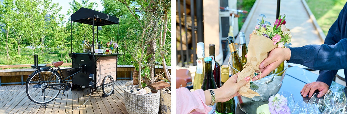 父の日に合わせて、6月14日(土)と15日(日)の2日間限定でフラワーショップと一体化したワインスタンドが登場します。販売するのはサステナブルフラワーを使用したブーケと、父の日のプレゼントにもぴったりのグリーンプラント。ワインを片手に自然への思いを馳せる、そんなひとときをお楽しみください。