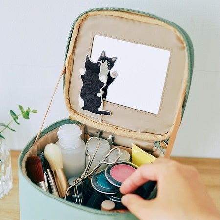 開けてびっくり! 鏡にじゃれつく猫のバニティーポーチの会