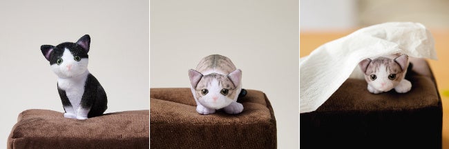 フェリシモが展開する「猫部™」は、「子猫がかくれんぼするボックスティッシュカバー」のウェブ販売を7月20日より開始しています。ティッシュペーパーをカーテンや布団に見立てて、その中で遊ぶ猫の様子を再現したボックスティッシュカバーです。ティッシュペーパーを引き抜くと、その向こうから熱視線を送ってくるハチワレの子猫や、ペーパーを手前にふんわりかぶせると、その下からこちらを伺うキジ白の子猫の姿などが楽しめます。上に乗った2匹の子猫たちは、耳や毛並み、しっぽや肉球など360度リアルに再現されていて、一日中ながめていたくなるかわいらしさです。カバー本体は、落ち着いたブラウンカラーでインテリアになじみやすく、自宅でも職場でも猫好きアピールができます。販売価格の一部は飼い主のいない動物の保護と里親探し活動、野良猫の過剰繁殖防止活動、災害時の動物保護活動などに活用されます。
