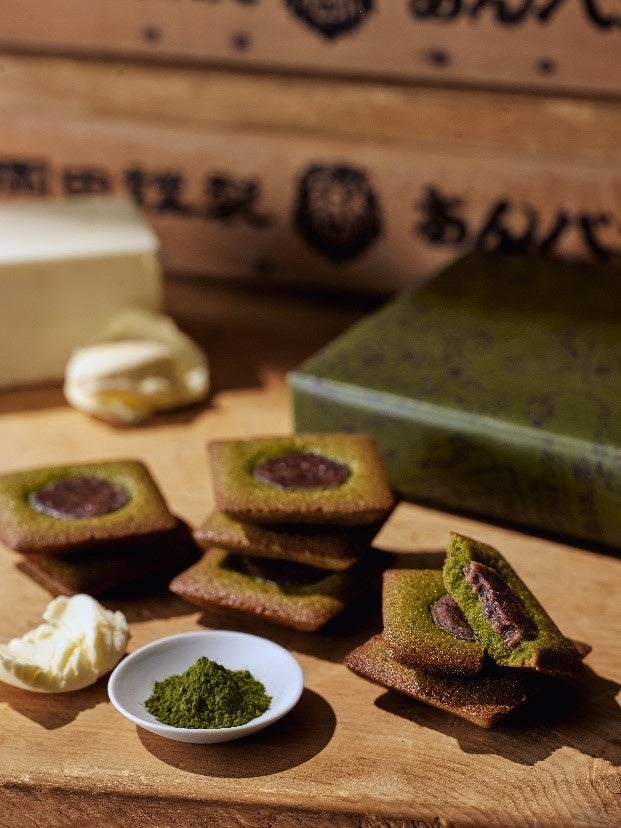 碾茶(てんちゃ)を忍ばせ、より一層薫りの立った宇治抹茶と、 丁寧に焦がしたバターが染み入ったフィナンシェ生地で北海道産『えりも小豆』餡子を包み込みました。