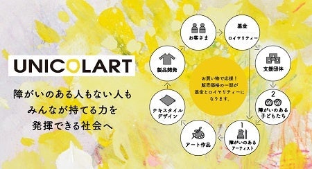 CCPプロジェクトが手がけるブランド「ユニカラート」からは、チャレンジドアーティストの小早川桐子さんの「夏の公園」という作品をもとに制作したポップで華やかなデザインです。