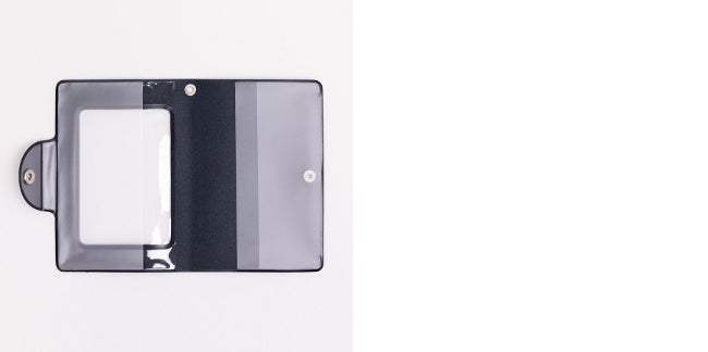 一方は窓あきになっているので、手帳の種類も一目でわかりやすくなっています。内側にも2つのポケットがあるので、カード類や切符などを一緒に入れることができます。ホック部分は、昨年のモニターアンケートの要望をもとにした折り線付きの開閉しやすい仕様です。