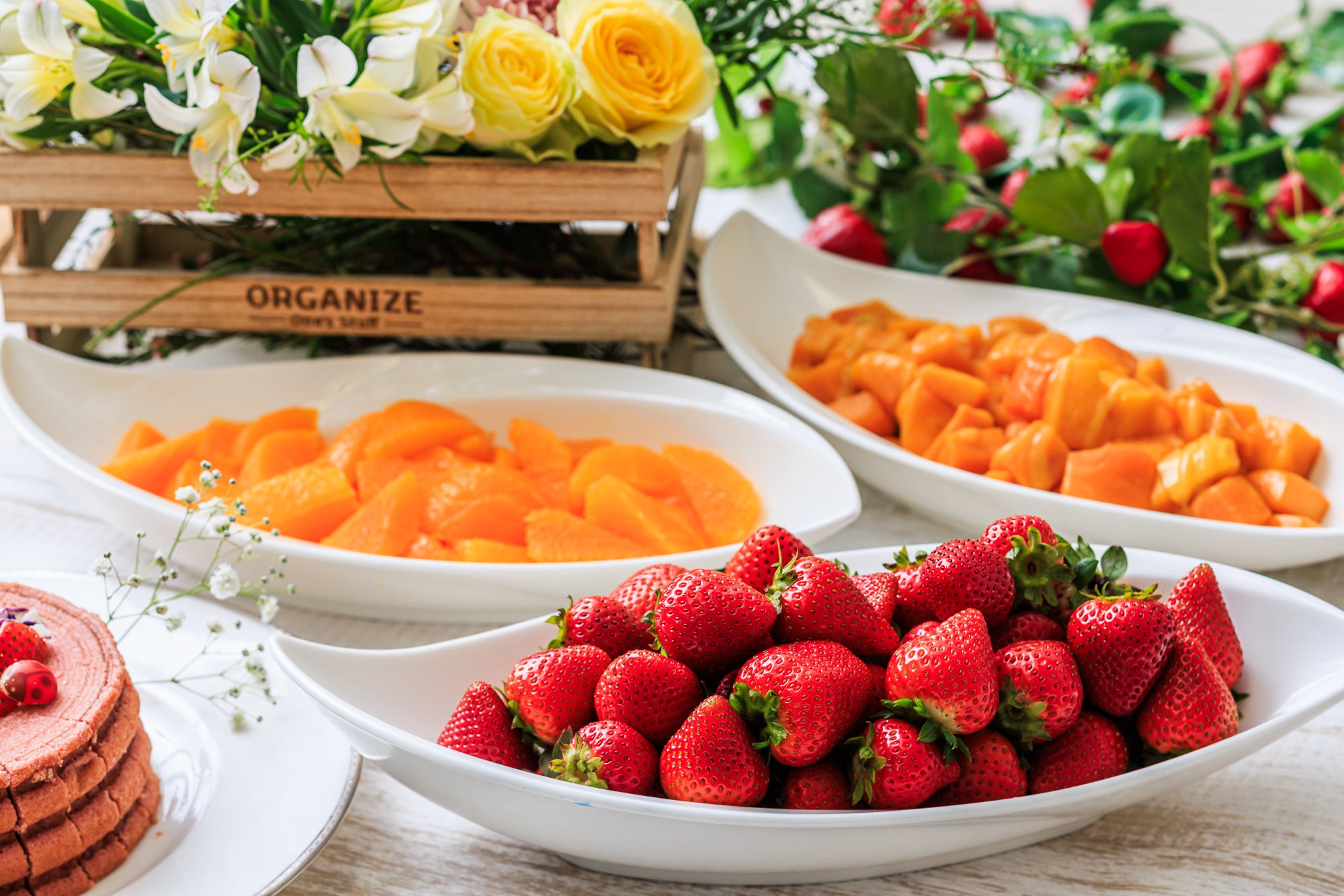 いちごのショートケーキ、プリン いちごソース、いちごムース いちごコンポート、いちごとライムゼリー、いちごレアチーズ、バームクーヘンいちご、プレーンマフィン いちご飾り、ストロベリータルト タルトシェルストロベリー、ストロベリーブラウニー、ストロベリードーナツ、マカロンフレーズ(あまおう)、あまおうアマンド、ストロベリーミニコーン、カヌレ いちごのパータグラッセ、あんみつ いちご、ミニ葛饅頭ストロベリー、オレンジ、いちご、フローズンマンゴー、プルマンベリー いちごメロンパン など