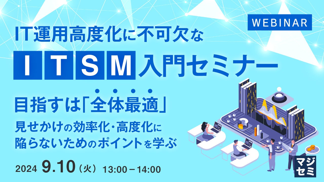 マジセミ株式会社は「IT運用高度化に不可欠なITSM入門セミナー」というテーマのウェビナーを開催します。
