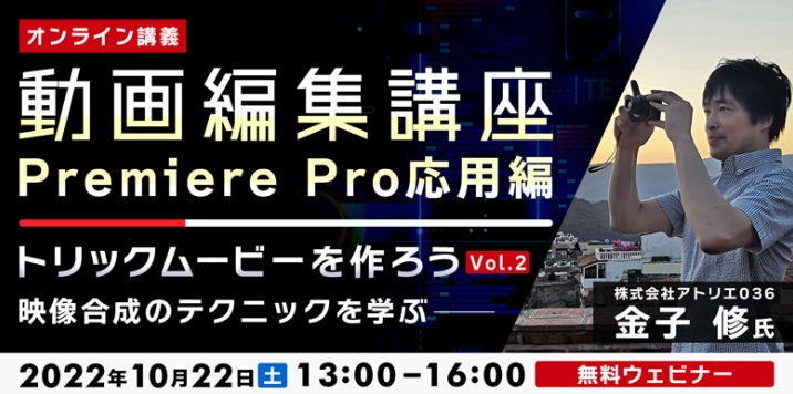 【TV制作者向け】Premiere Proで映像合成のテクニックを学ぶ!10/22(土)「動画編集講座 トリックムービーを作ろうVlo2」(無料・オンライン)