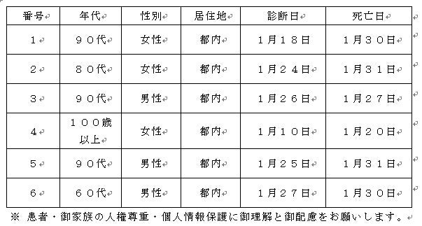 都内で新型コロナウイルスに感染した方が死亡されましたのでお知らせします。