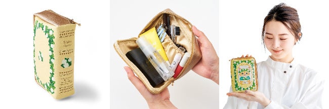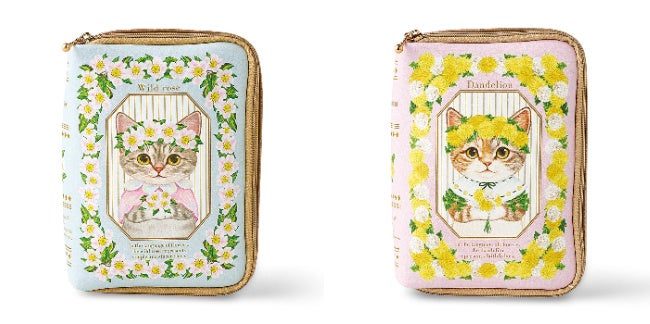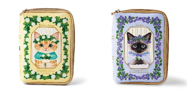 お花の妖精になったメルヘンな猫さんが描かれた植物図鑑風のミニポーチです。お化粧直しに必要な最低限のメイク道具がすっぽり入るサイズで、バッグに入れて持ち運びしやすいのもポイントです。背表紙を並べて図鑑をそろえるように楽しむこともできます。