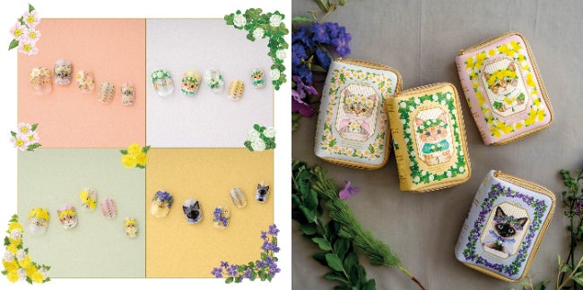 お花の妖精になったメルヘンな猫さんが描かれた「指先にキラリと花咲くネイルシール」と「植物図鑑風ポーチ」がフェリシモ「猫部™」から登場