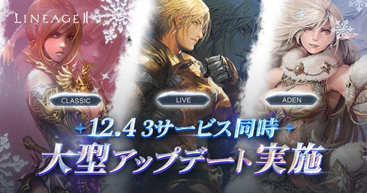 PC向けオンラインゲーム『リネージュ2』をサービス、運営しているエヌ・シー・ジャパン株式会社(本社:東京都港区、代表取締役:林 元基(イム ウォンキ)、以下エヌシージャパン)は、2024年12月4日(水)に、3サービス同時の大型アップデート実施をお知らせします。