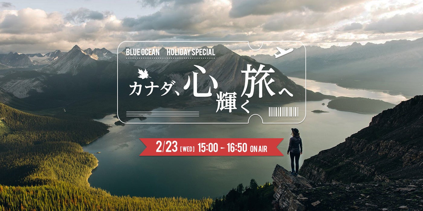 TOKYO FMでは、2022年2月23日(水・祝)15:00~16:50、Blue Ocean Holiday Special『カナダ、心輝く旅へ』を放送します。高校時代をバンクーバーで過ごし、現在も母親がバンクーバー在住という、TOKYO FM『Blue Ocean』パーソナリティの住吉美紀が、カナダにまつわるゲストを招き、美しい自然や広大な国立公園をはじめとする今年訪れて欲しいカナダの観光スポット、カナダで体験できるアクティビティ、世界中のセレブが注目する島、持続可能なグルメや文化など、心輝くサステナブルな旅の魅力について、たっぷりとご紹介していきます。海外旅行の再開が待ち望まれる今、最新のカナダを知り、カナダとつながるためのスペシャルプログラムをどうぞ、ご期待ください。特設サイト(https://www.tfm.co.jp/canadatabi/)からは、メッセージも募集しています。