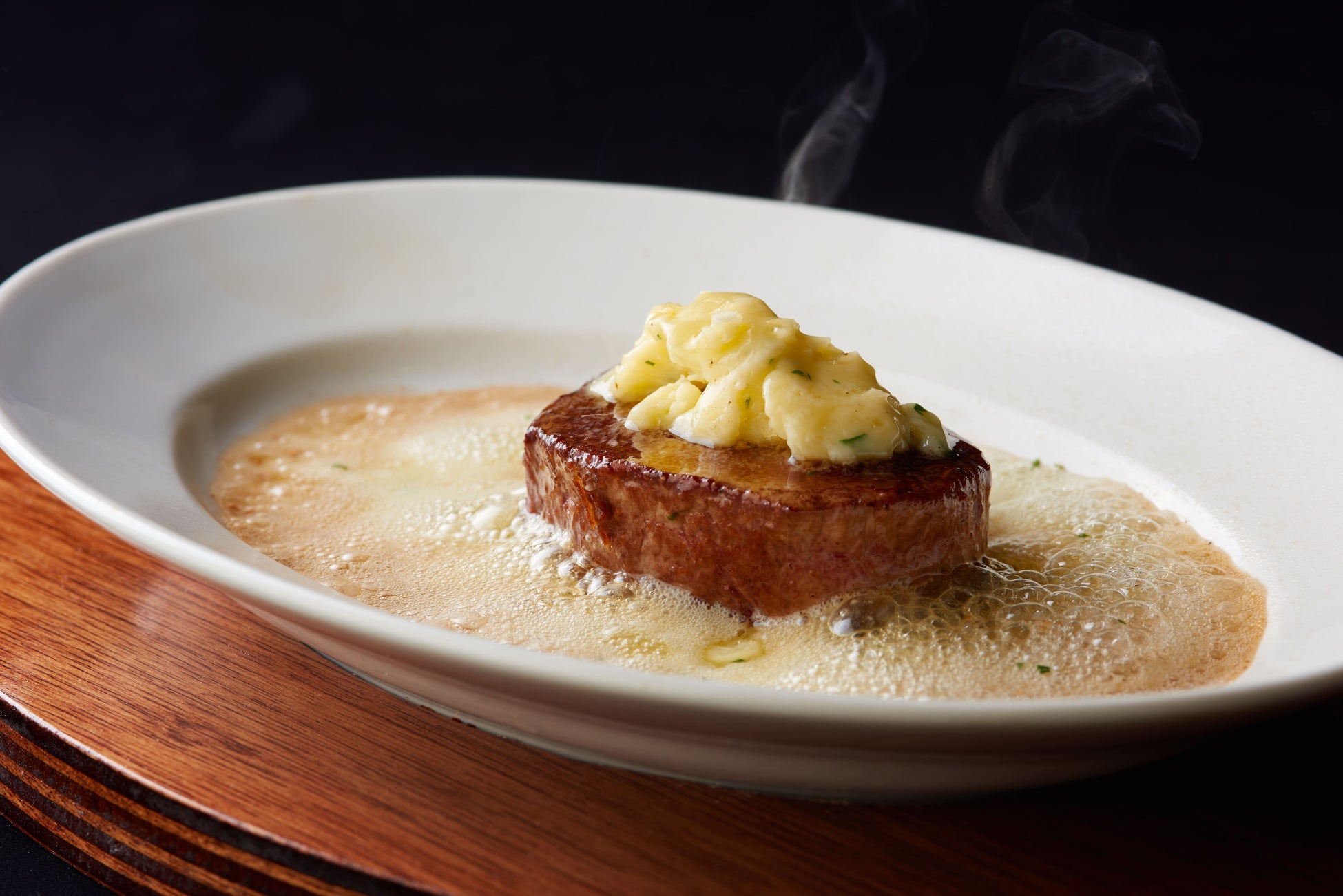 イタリア語で“火山”という意味を持つ「volcano」の名の通り、熱を帯びたお皿の上で、まるで噴火した火山から流れる溶岩を思わせるガーリックバターが佐賀県産和牛を包み込みます。バターの香ばしい香りとともに、じわっと溢れる肉汁の旨味を堪能できる一品です。