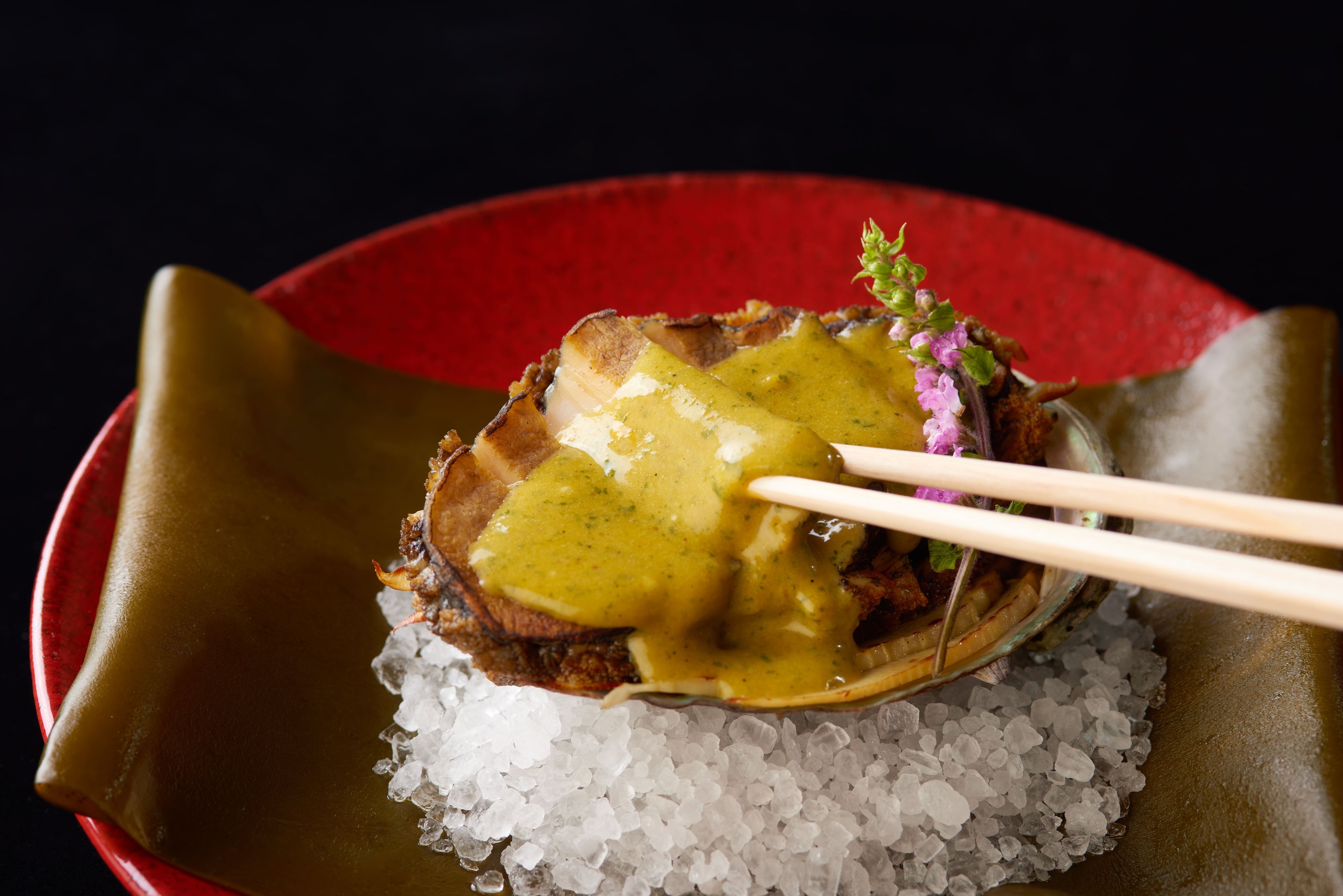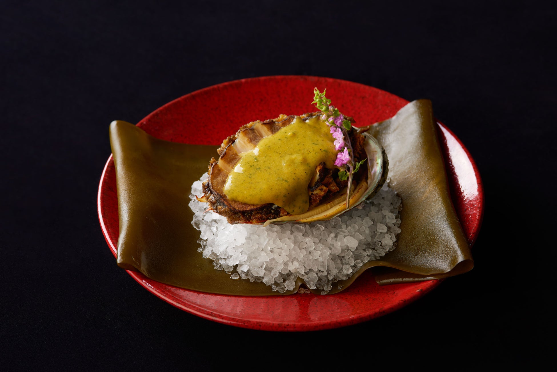 ■黒鮑 岩塩包み焼き 木の芽味噌ベアルネーズソース