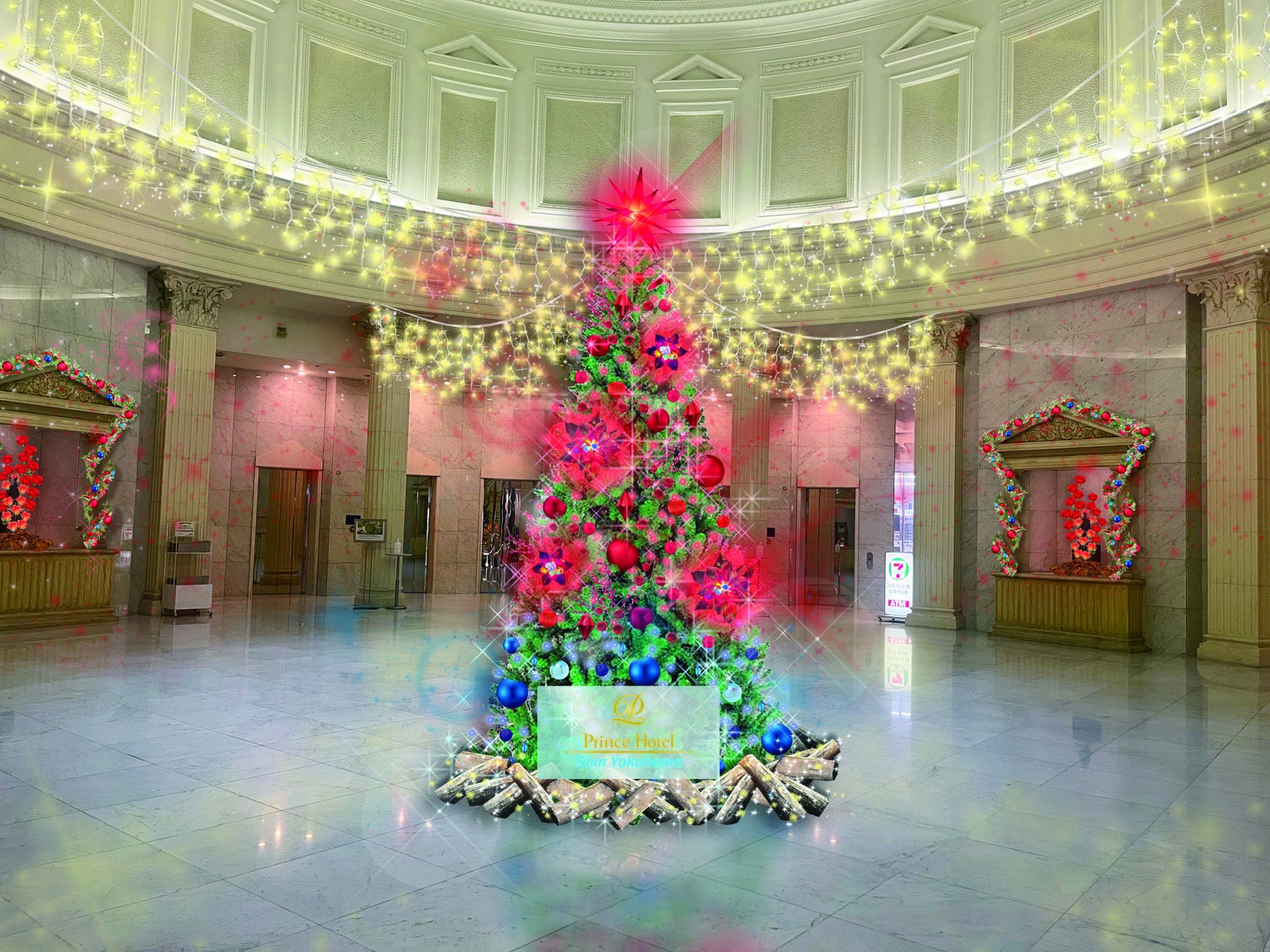 【新横浜プリンスホテル】赤と青のグラデーションで“情熱の炎”をイメージ幻想的に輝く4mのクリスマスツリーが登場