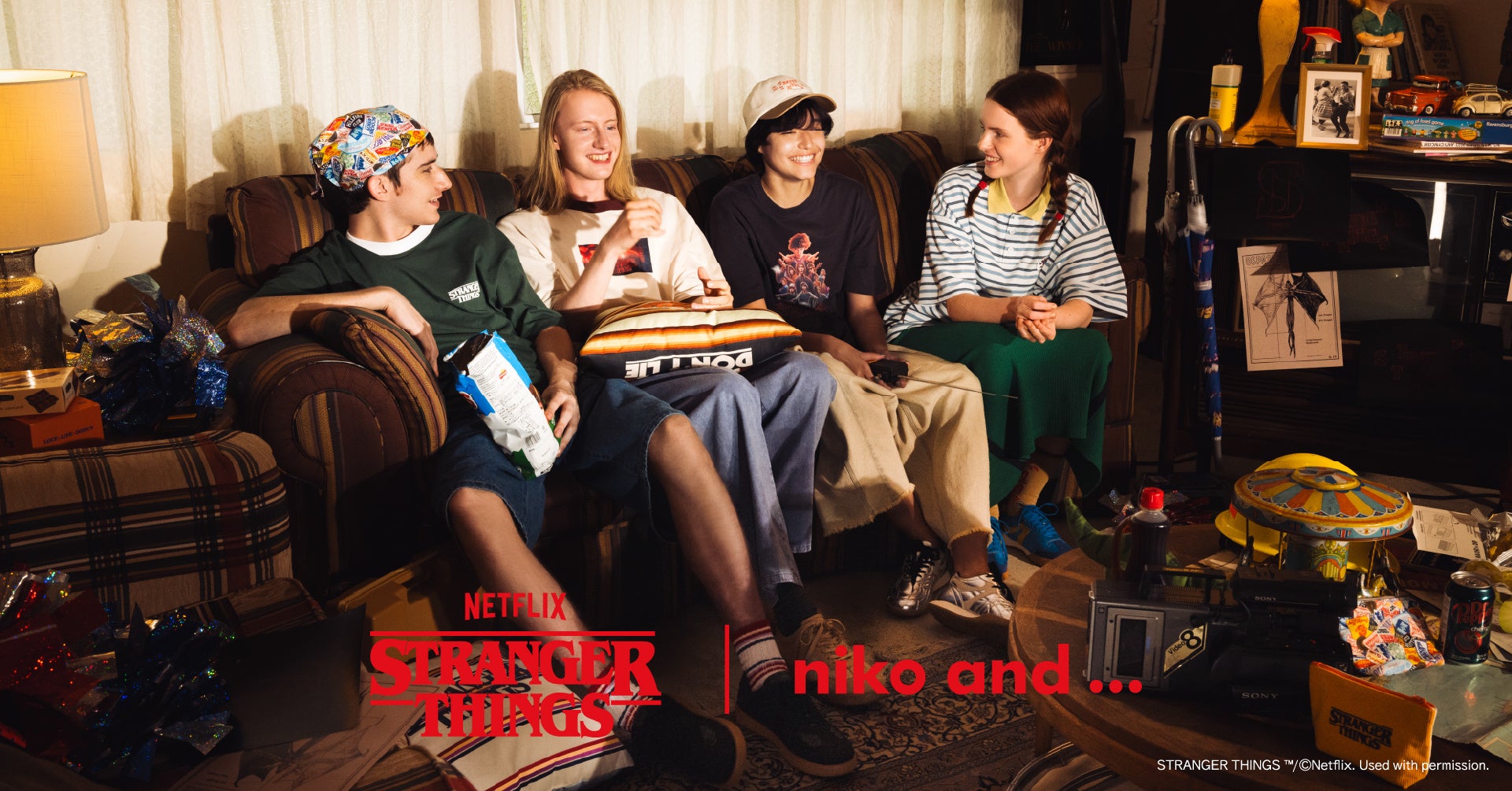 今回、コラボレーションするNetflixシリーズ「ストレンジャー・シングス 未知の世界」は、2016 年のシーズン1 配信開始以来、瞬く間に大ヒットしムーブメントを拡大し続けています。最終章となるシーズン 5 が 3 回に分けて配信されることが決定し、世界中が再注目している大人気作品です。「niko and ...」は、本作品の 80 年代 のポップカルチャーやノスタルジックな世界観に共感し、シーズン5公開を更に盛り上げるべく初のコラボレーションにいたりました。