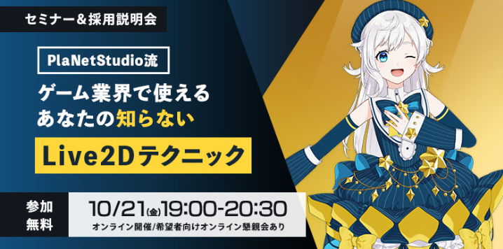 【ゲーム業界】“使える”Live2Dテクニックを惜しみなくシェア!10/21(金)2DCG PlaNetStudioのオンラインセミナー&採用説明会