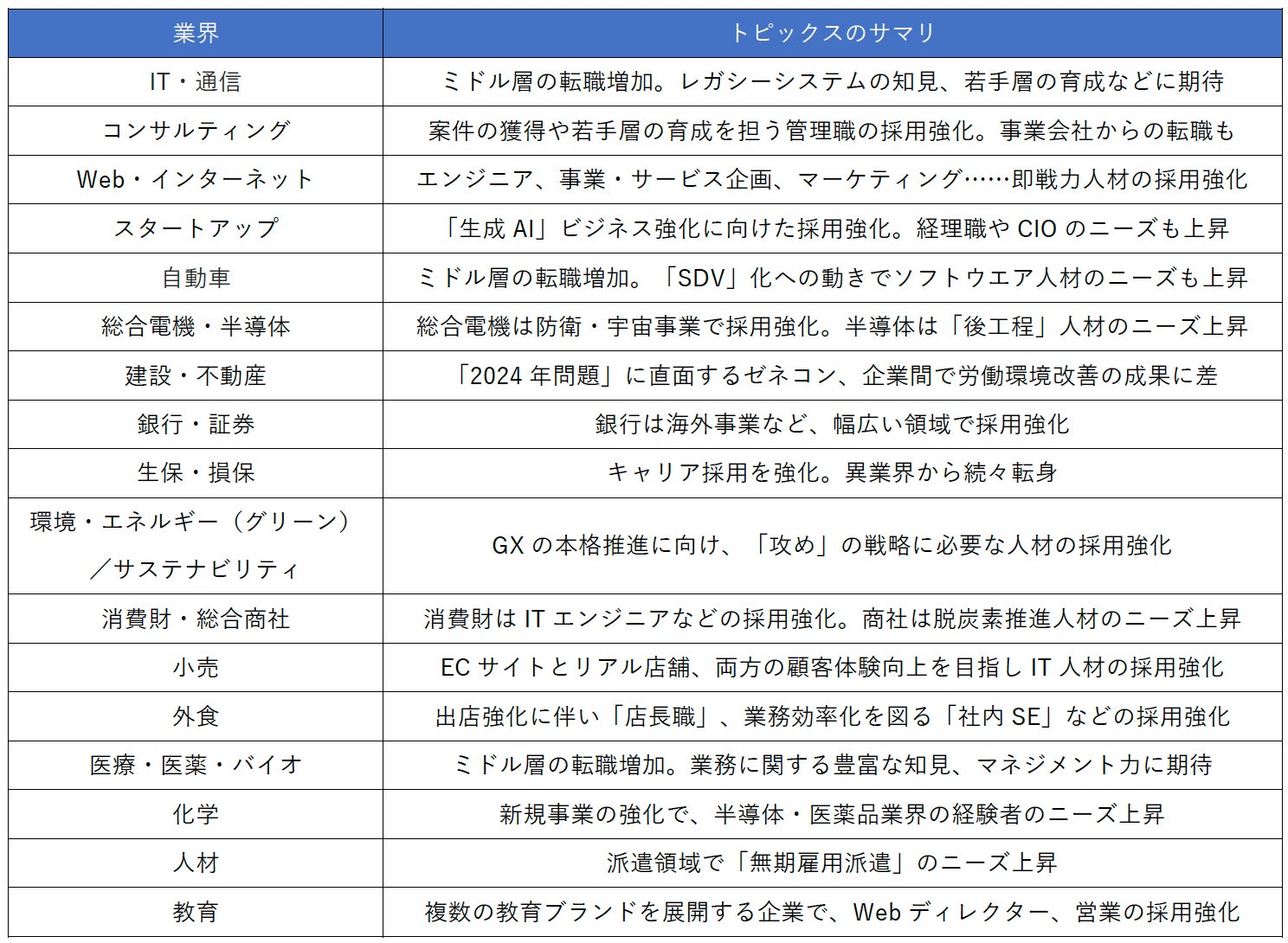 2024年度上半期「転職市場動向レポート」を発表 業界・職種未経験、ミドル層の転職が活発な現状を解説