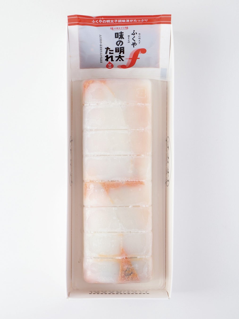 ふくやが手掛けるいか×粒明太子の押し寿司は、ごま油と大葉が味のアクセントとなっています。