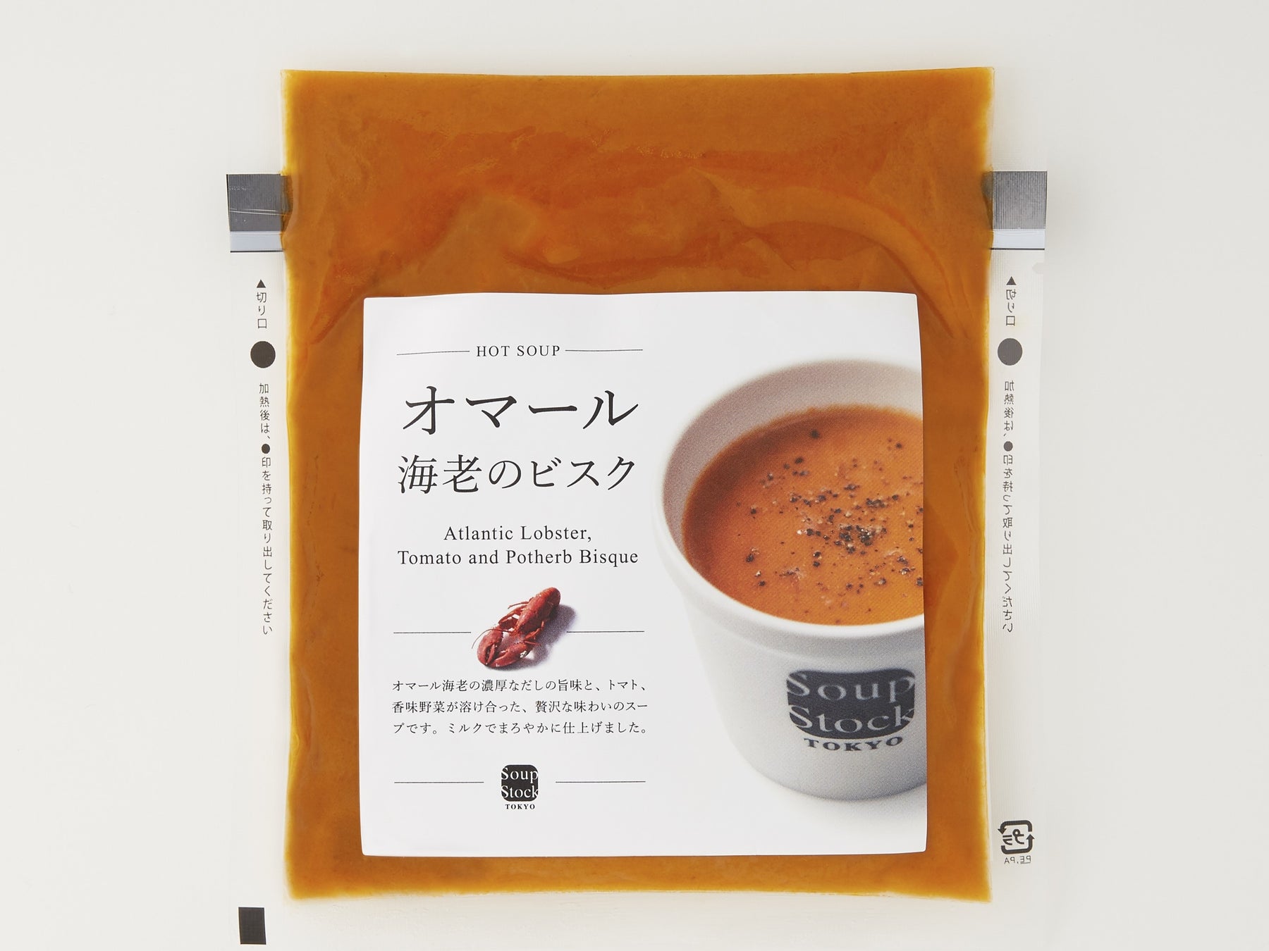 オマール海老の濃厚なだしの旨味と、トマト、香味野菜が溶け合った贅沢な味わいのスープです。