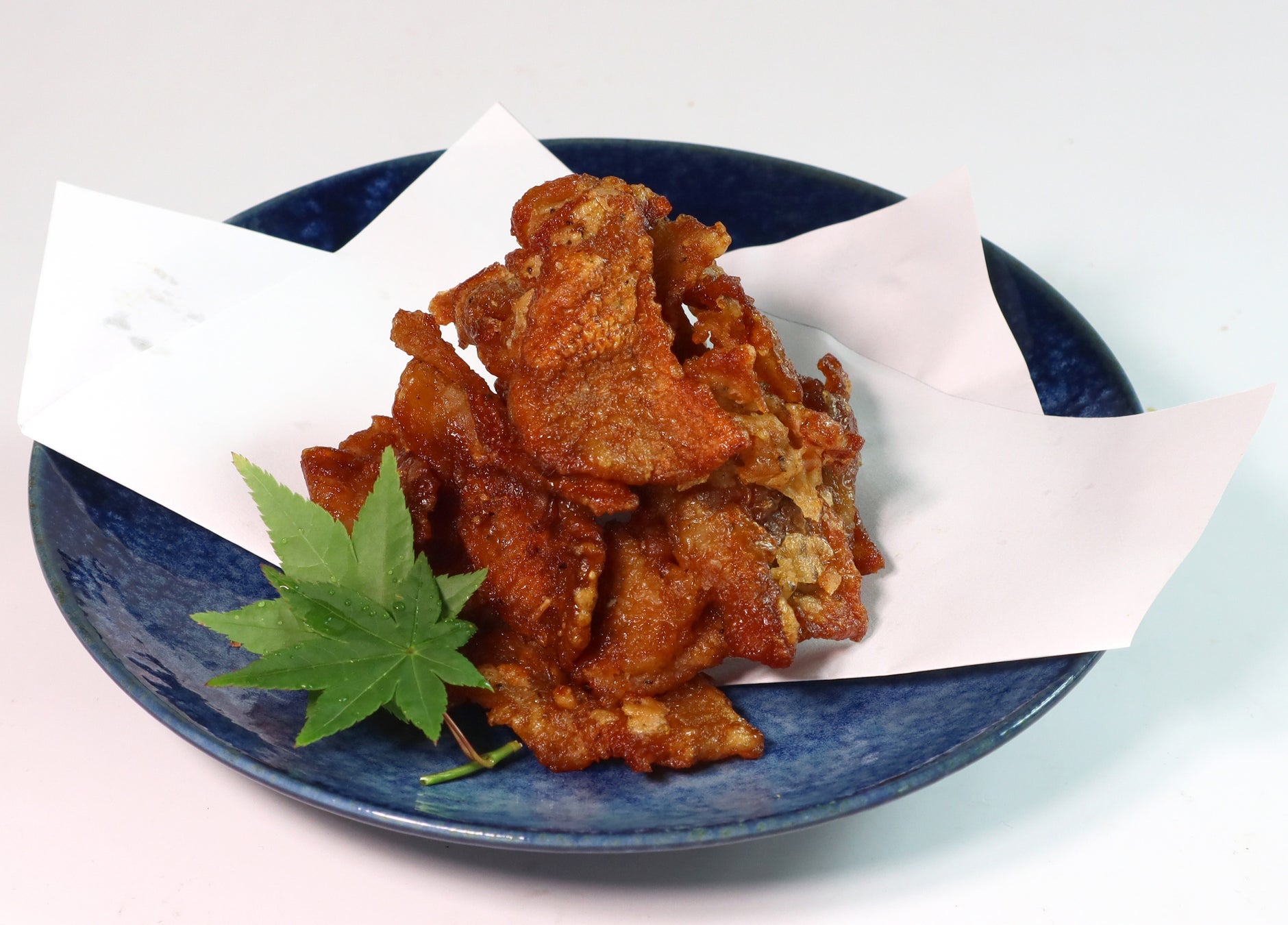 九州産鶏皮使用、噛み応えのある鶏皮唐揚げに恵屋焼き鳥のタレを絡めました。