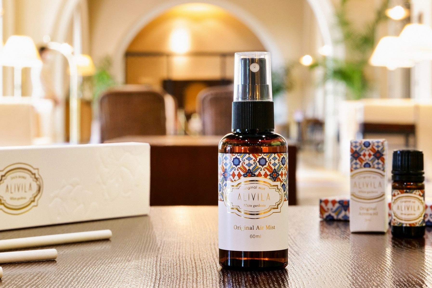 アリビラに到着してロビーに入るとふわっと香る「ホワイトガーデニア」の香りは、2016年よりアリビラオリジナルのフレグランスアイテムとして商品を展開しております。
