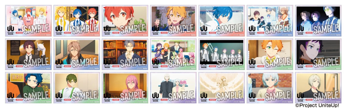 コラボドリンクは、「UniteUp! -Uni:Birth-」のユニットをイメージした全3種をご用意します。注文特典として、コラボドリンク1品ご注文につき、オリジナルポストカードを全21種の中からランダムで1枚プレゼントします。