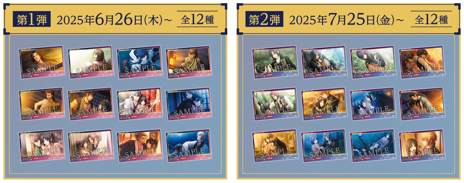 コラボドリンクは、「薄桜鬼 真改」のキャラクターをイメージした全12種をご用意します。注文特典として、コラボドリンク1品ご注文につき、オリジナルポストカードを全24種【第1弾:12種/第2弾:12種】の中からランダムで1枚プレゼントします。