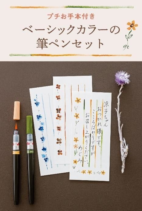 一筆せんにも使えるプチお手本付き ベーシックカラーの筆ペンセットの会
