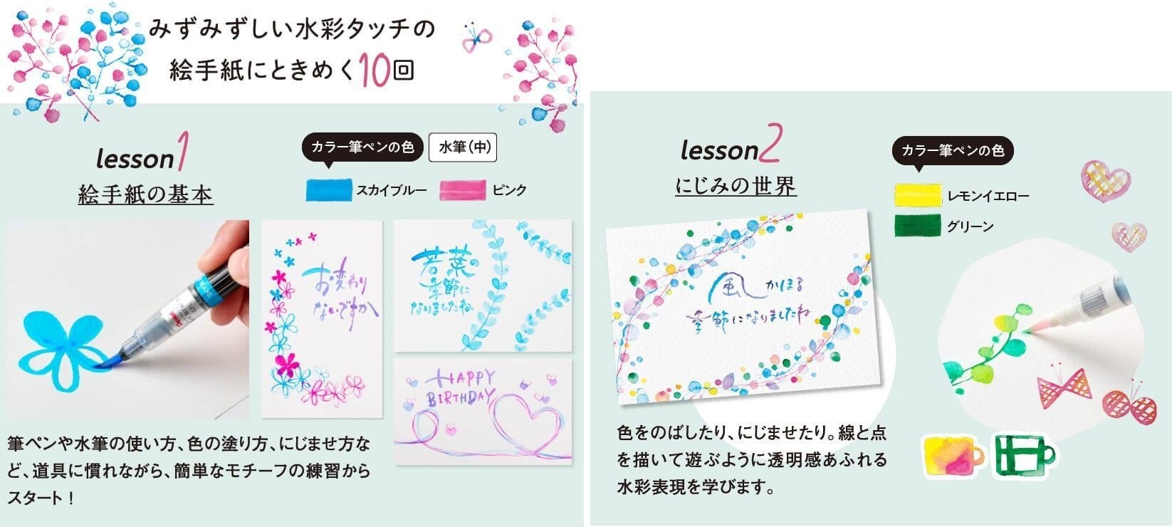 フェリシモが展開する“おうちレッスン「ミニツク®」”は、新プログラム「カラー筆ペンで描く 絵心いらずの素敵な1枚 絵手紙のいろはを楽しむレッスン」を発表、7月14日よりウェブ販売を行っています。絵や字があまり得意でない人でも、カラー筆ペンと水筆だけで簡単にやわらかな水彩画タッチの絵手紙が描けるレッスンプログラムです。ちょっとしたひとことや季節のあいさつなど、さまざまなシチュエーションに役立ちます。新作はウェブサイトでチェックできます。